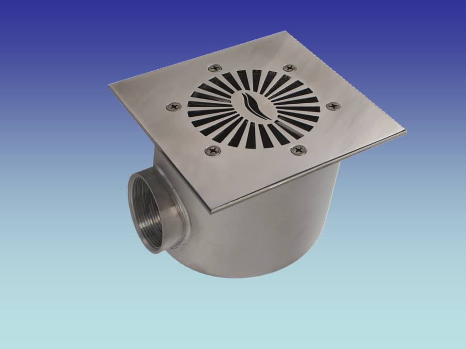 Bodenablauf mit quadratischem Deckel und Gegenflansch Anschluss 2″